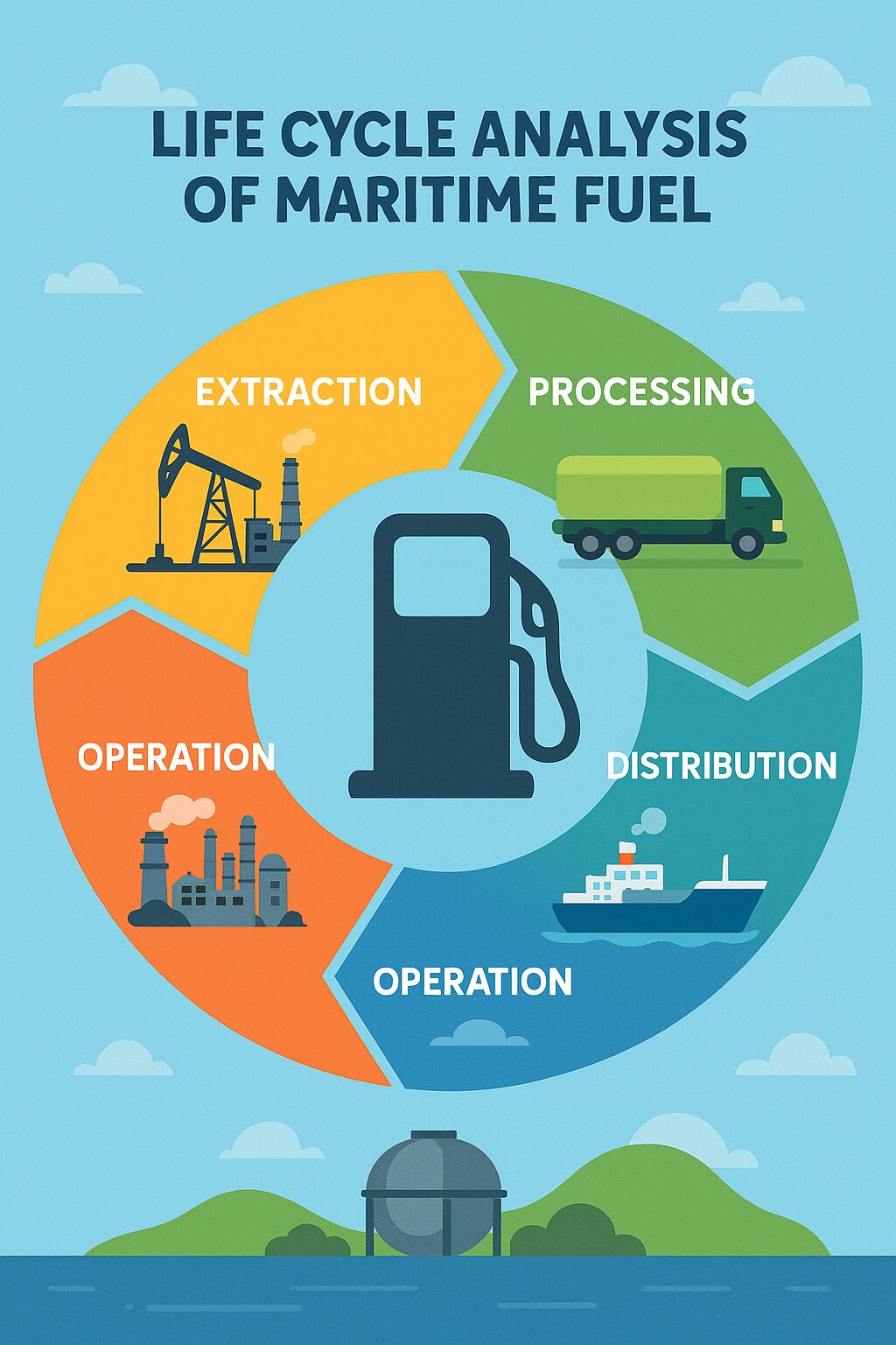 The global maritime industry faces increasing pressure to decarbonize, necessitating a comprehensive understanding of the environmental impact of marine fuels. Life Cycle Analysis (LCA) emerges as a critical tool in this endeavor, providing a standardized and holistic methodology for assessing greenhouse gas (GHG) emissions across the entire fuel value chain. This section introduces the fundamental principles of LCA, its structured phases, and its specific application within the maritime context.