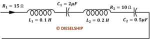 (b) Compare the series and parallel resonance circuits. Find the frequency at which the following circuit resonates. (10)