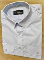 This Easy care Wash and Wear Shirt has button-down epaulettes on the shoulders and is made from a light, crease-resistant poly-cotton blend.